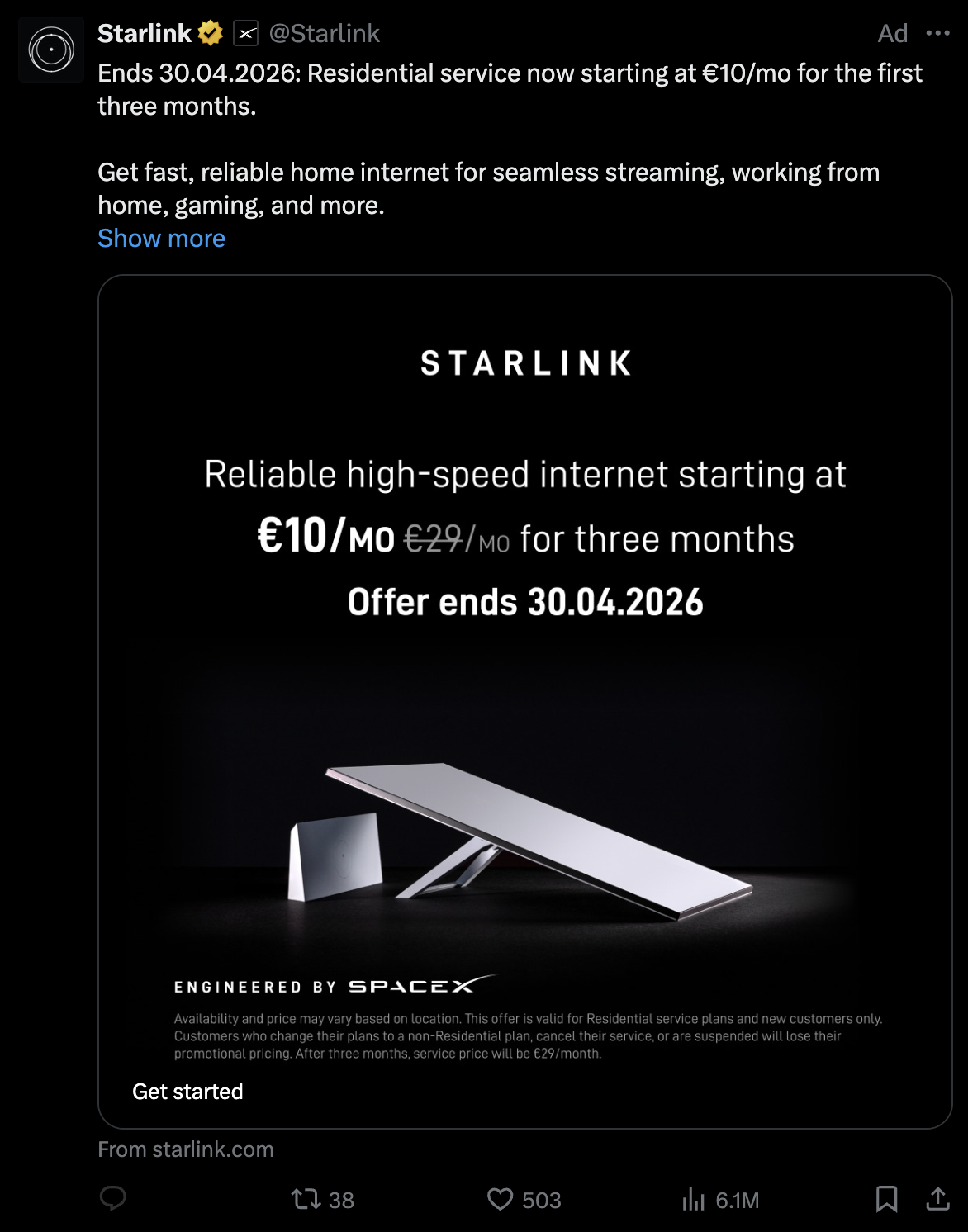 Starlink Ad in my X Feed
